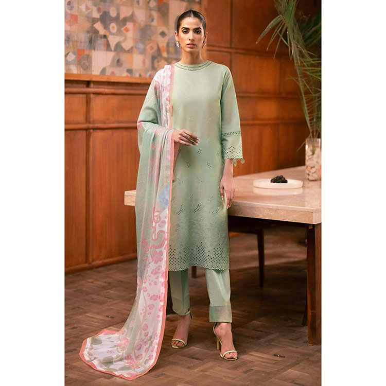 Thanh lịch thêu pakistani bãi cỏ ăn mặc cho phụ nữ thoải mái Ready-to-Wear Top Bottom & dupatta Set với vòng eo tự nhiên